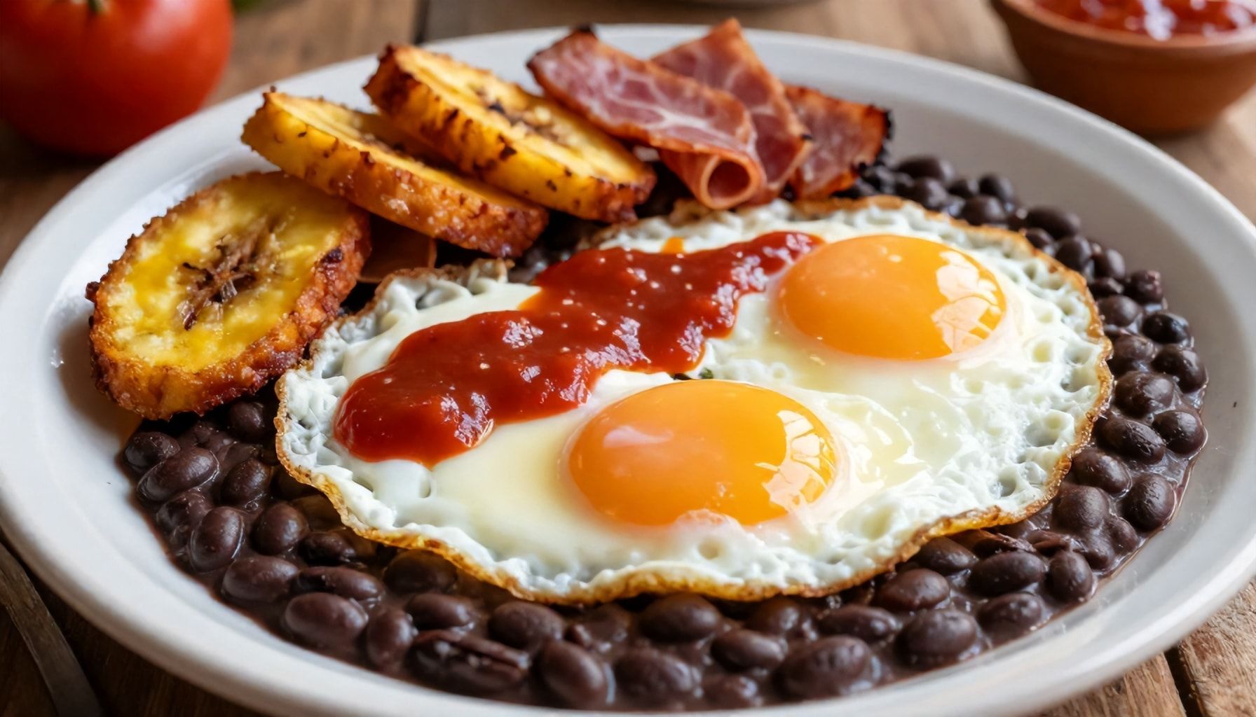 Una vez listos los plátanos, se colocan en un plato y se cubren con una capa de frijoles refritos. Los expertos recomiendan usar frijoles negros cocidos y machacados con un poco de manteca de cerdo para lograr la consistencia adecuada. Esta combinación de sabores es la esencia del plato.